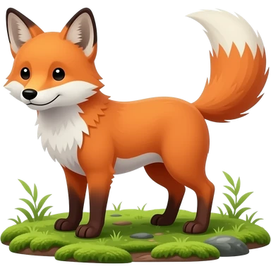adult fox with black dots for eyes its head at 3/4 with a full body tail up emoji