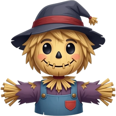 a tall scarecrow with a weathered, smiling turnip for a head, topped with a battered black top hat and featuring glowing button eyes. He is dressed in a tattered yet formal black tuxedo with a red bow tie, all balanced on a single wooden pole used for hopping. emoji