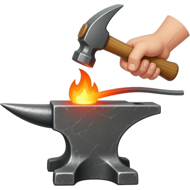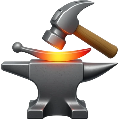 Blacksmithing icon forged metal piece being shaped with hammer and anvil with glowing red-hot metal emoji