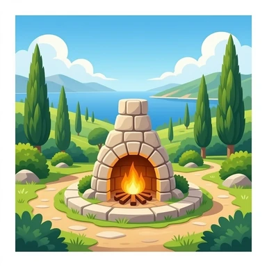 hearth, hestia inspired in greenery greece landscape emoji