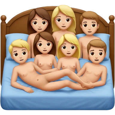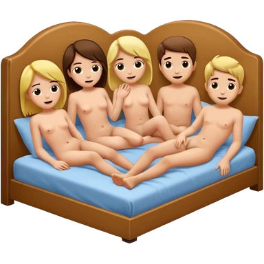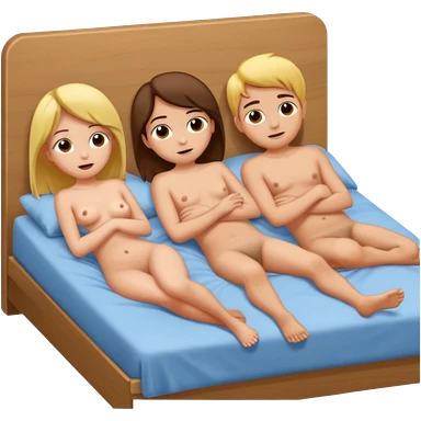 Naked girls and boys, completely unclothed with their entire bodies visible, are lying in bed. emoji