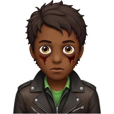 это должен быть юноша, одет в черную кожаную куртку, глаза цвета хамелион, но более коричневые, выглядит как зомби и еще средней длинны волнистые кудрявые волосы темно коричневого цвета, также добавь темный оттенок на задней фон emoji