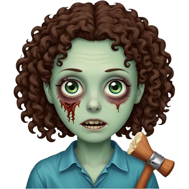 Создай человека зомби с корично,голобо-болотноми глазами и кудрявами волосами цвета темно коричневого emoji