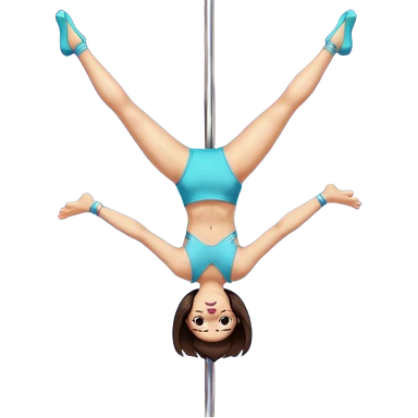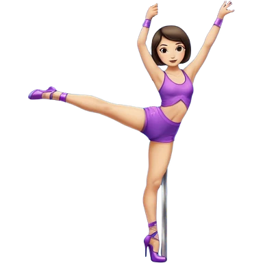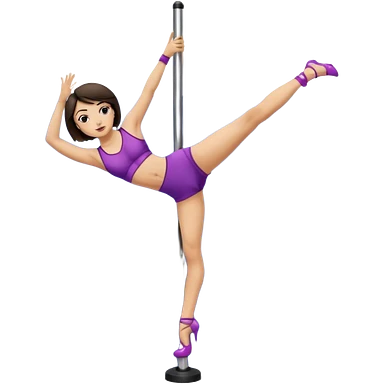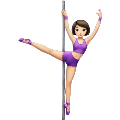 brunette with short hair (bob) and light skin pole dancing , two legs and two arms emoji