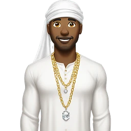 a black rich man wearing a white durag, white shirt, diamond earrings and diamond chain emoji