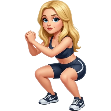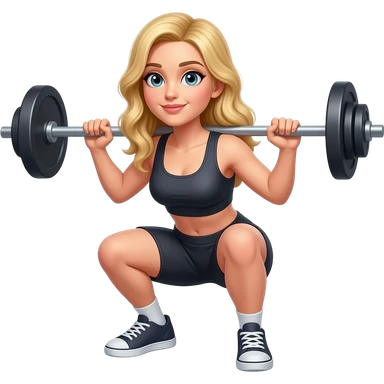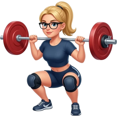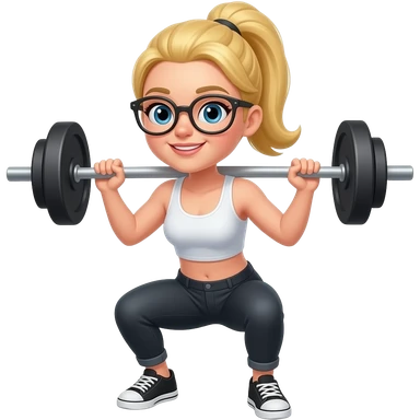 blond long hair female with glasses and pony tale doing squats with a barbell emoji