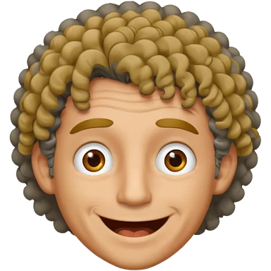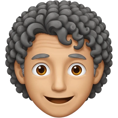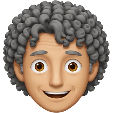 man curly black gray hair. crazy smile and tired eyes. emoji
