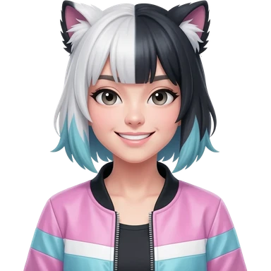 scene girl with skunk striped rainbow hair no cat ears indie sleaze emoji