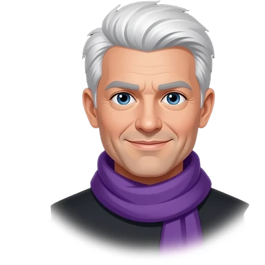 Make his scarf purple cloths and hair white and aura black emoji