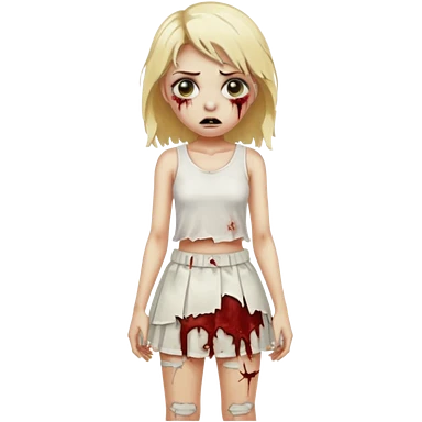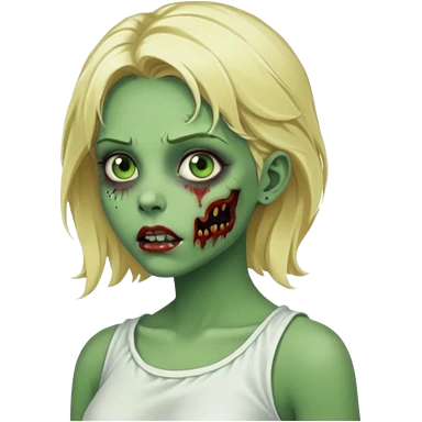 zombie blonde girl with white skirt, green skin and that it be in frontal zoom form emoji