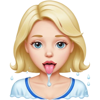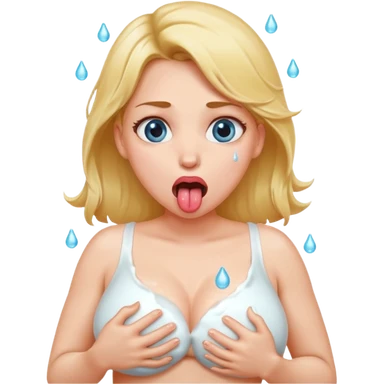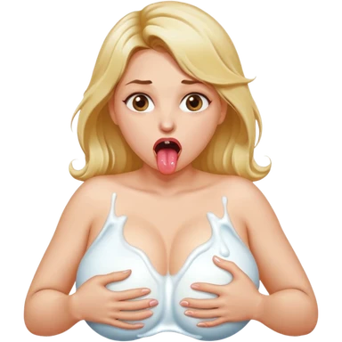 Make a naked woman, she has very massive breats and big nipples lactating milk, her eyes rolled up, she opens her mouth to stick her tounge out with saliva. She has wet milk on her chest. emoji