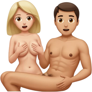 Woman opening her legs wider, she was nude, she has very large breast and nipples, woman on her right covers her breasts with her hands emoji