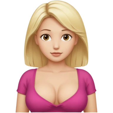 No bra, Bare skin woman, she has very massive breats and big nipples, her eyes rolled up, she opens her mouth to stick her tounge out with saliva. She has wet milk on her chest. emoji