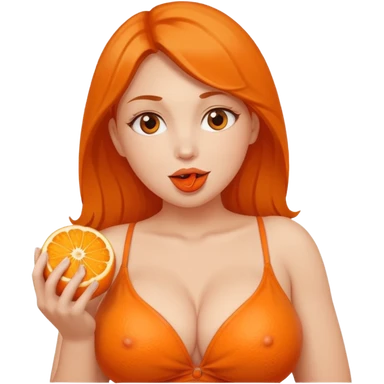 Bare skin woman, with very large breast and big nipples, she sticks her orange out with saliva, no clothes emoji