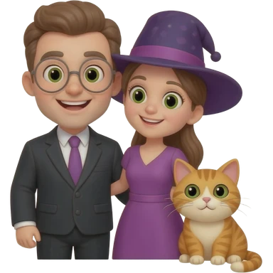 magician couple and their pet cat emoji