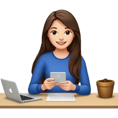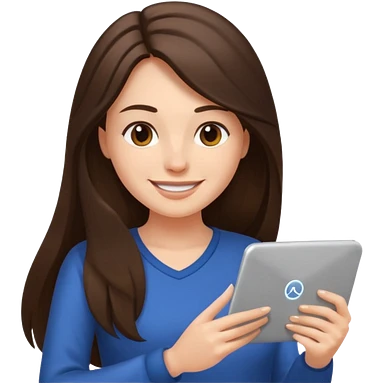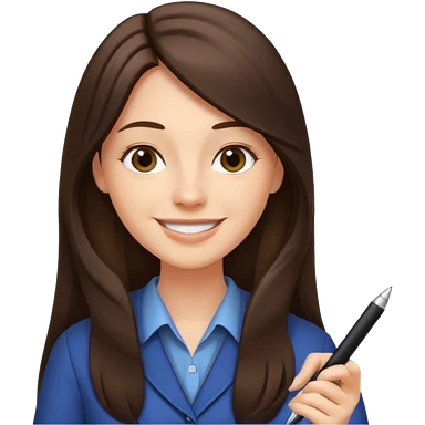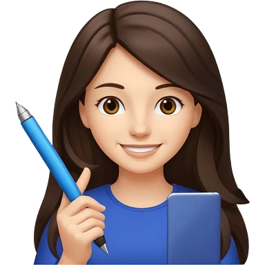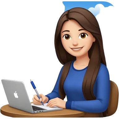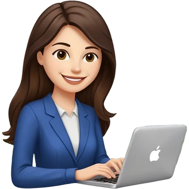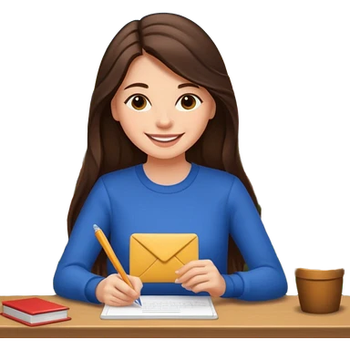 웃는 얼굴로 이메일 쓰는 브루넷 긴머리 여자 emoji