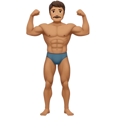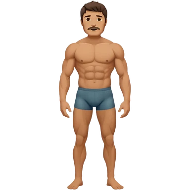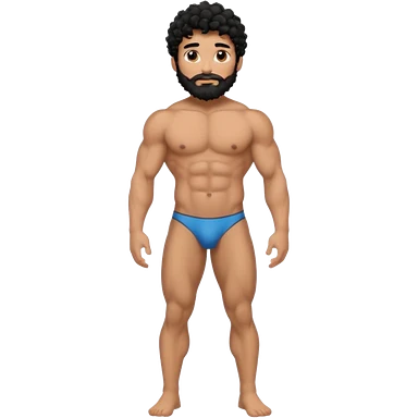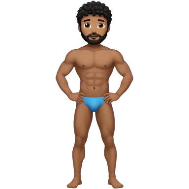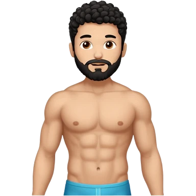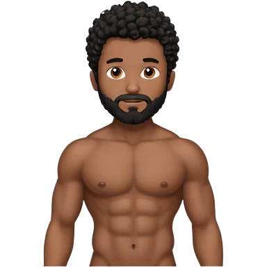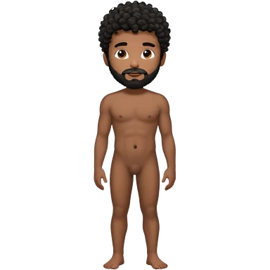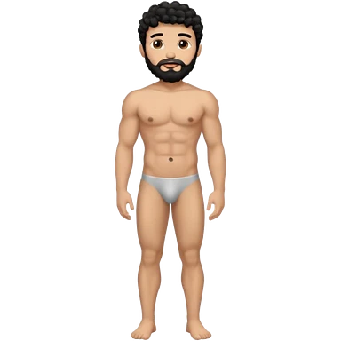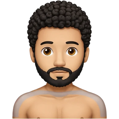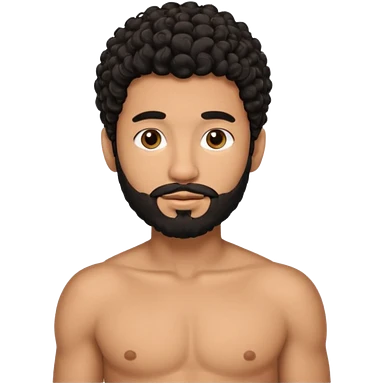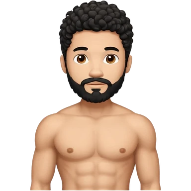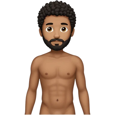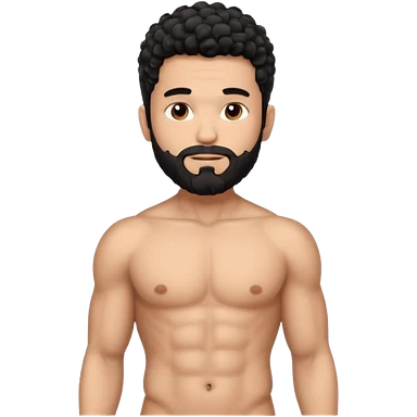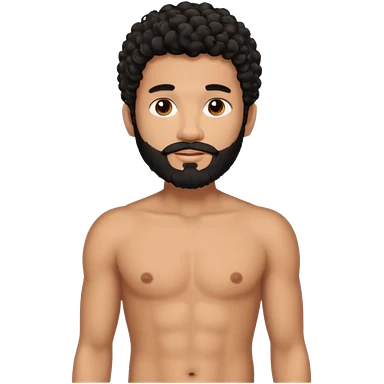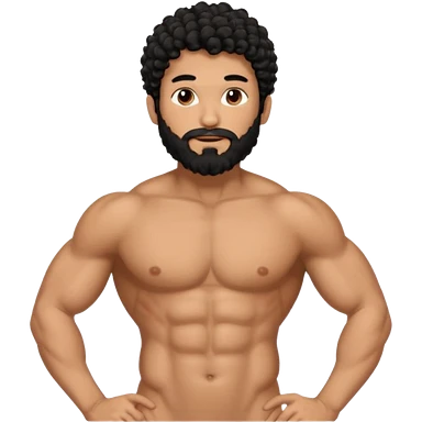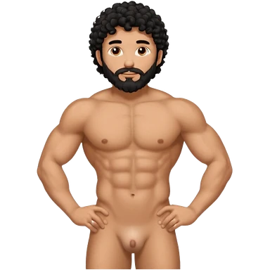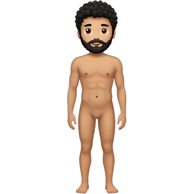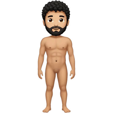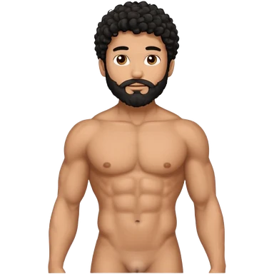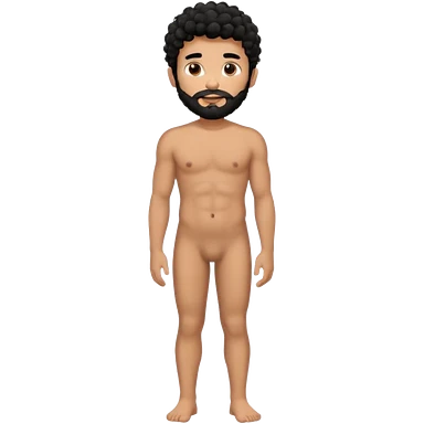Latino male, black curly hair with beard. He is standing naked posing emoji