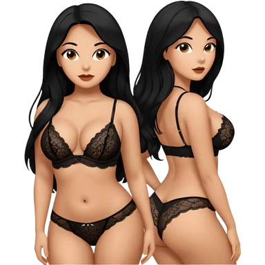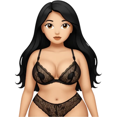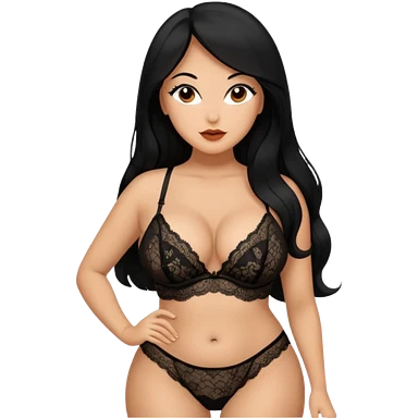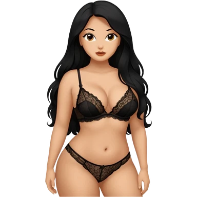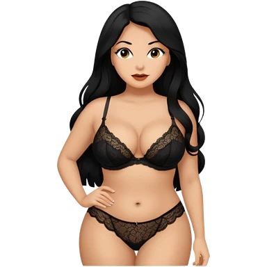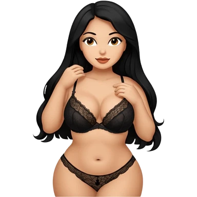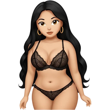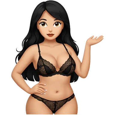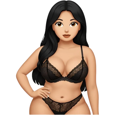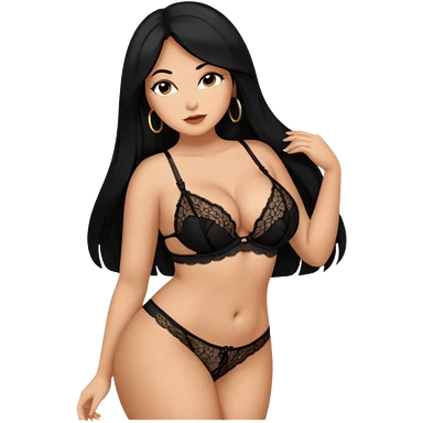 Curvy busty tan Latina Woman with long black hair in lingerie found sexy poses emoji