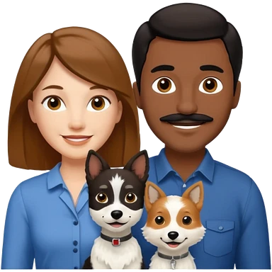 Quiero una pareja la mujer con el pelo castaño y el hombre con el color apenas moro hito con un perro Fox terrier blanco con gris emoji