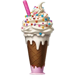 a birthday shake topped with a sprinkle donut hole, sprinkle sugar cookie, and swirl lollipop emoji