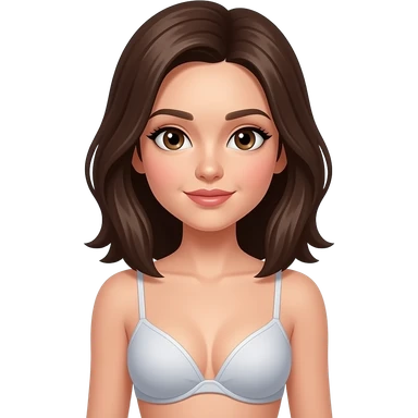 Medium hair long up to line bra , brown eyes, slim and female emoji