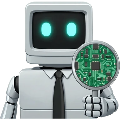 humanized computer with a looking glass emoji