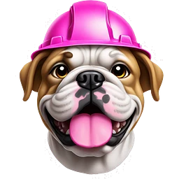 bulldog with pink hard hat that is 24x24 emoji