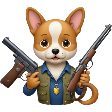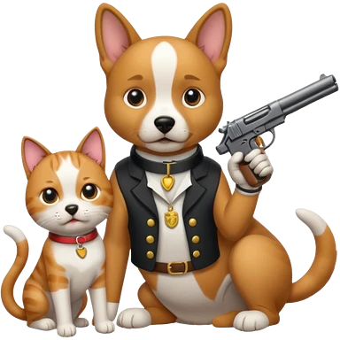A dog cat, a dog holding a gun, a dog, a dog holding a gun emoji