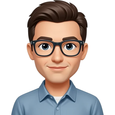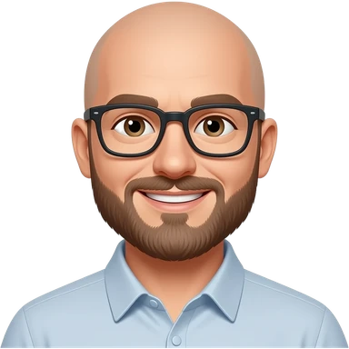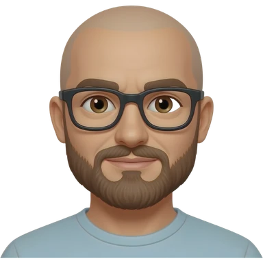 bald caucasian man with brown beard and brown eyes and black glasses emoji