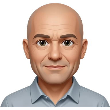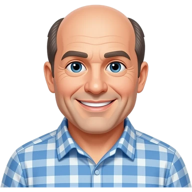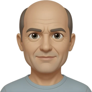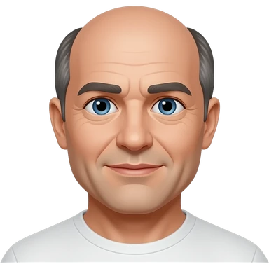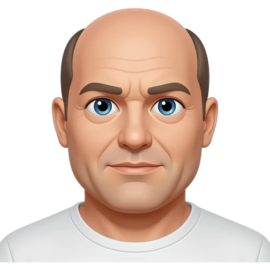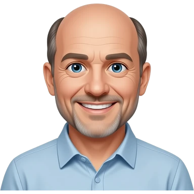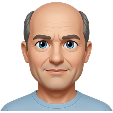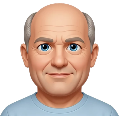 man in 50s bald on top, hair on sides, no facial hair, blue eyes, fat emoji