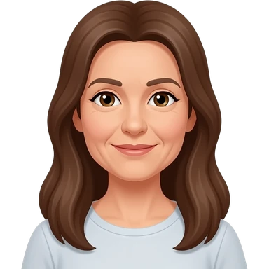 woman in her 60s with long brown hair parted in middle emoji