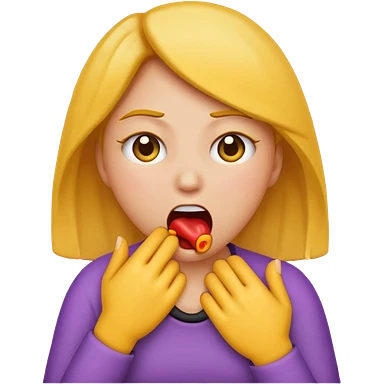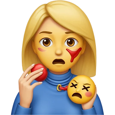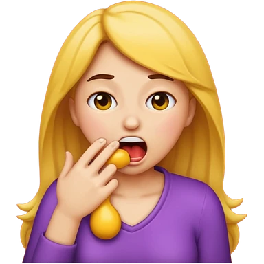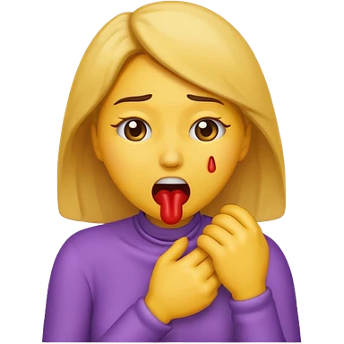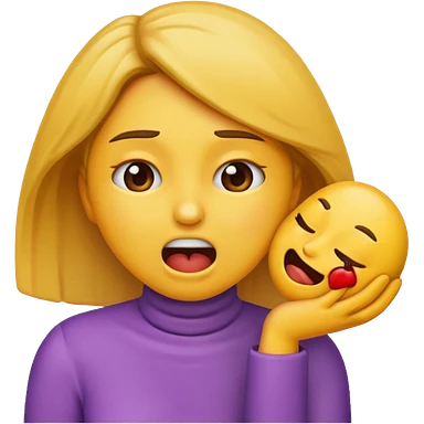 A 3D emoji-style woman with a dead-face vibe: X-shaped crossed-out eyes, mouth open with tongue sticking out slightly, lifeless cartoon expression. She has light caramel brown skin, smooth glossy emoji texture, rounded face, shoulder-length hair, wearing a purple top. emoji