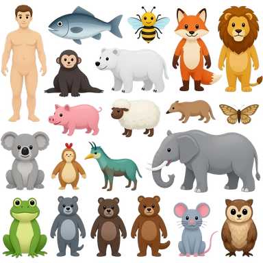 Chicken, Fish, Bee, Fox, Lion, Seal, Monkey, Pig, Sheep, Polar Bear, Donkey, Sloth, Bird, Koala, Elephant, Dog, Mole, Frog, Mouse, Beaver, Bear, Rhino, Owl, Ram, Moth emoji