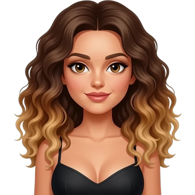 a supermodel with curly brown hair and a caramel balayage with a good size bosom emoji