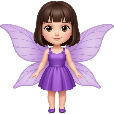 whole body fairy with purple dress and extremely fair skin fairy with dark brown hair bangs and dark brown eyes emoji