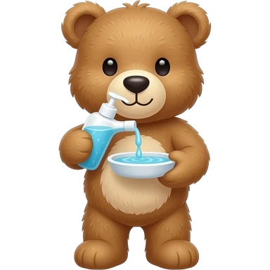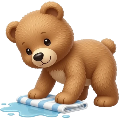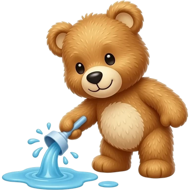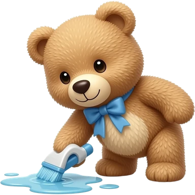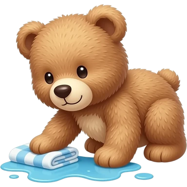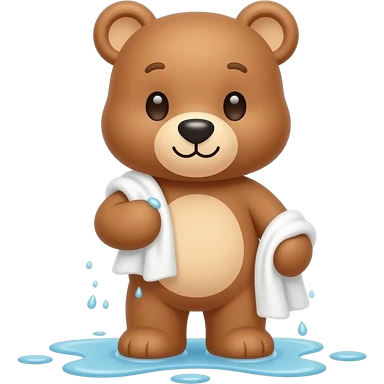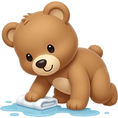 soft teddy bear cleaning spilled water on the floor with a towel emoji