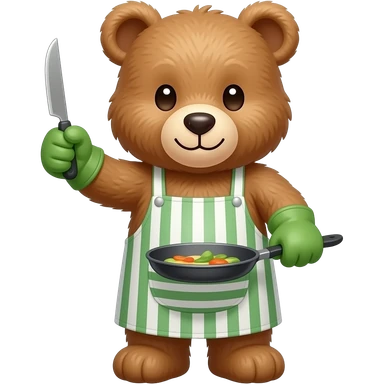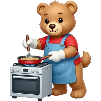 smooth haired teddy bear wearing gloves while cooking over a stove emoji