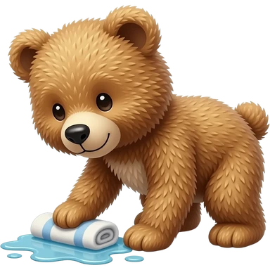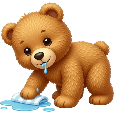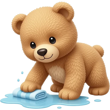 fluffy teddy bear cleaning spilled water on the floor with a towel emoji