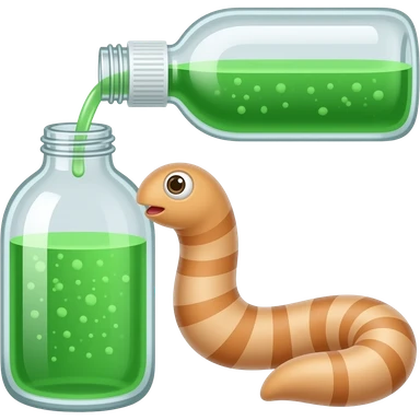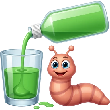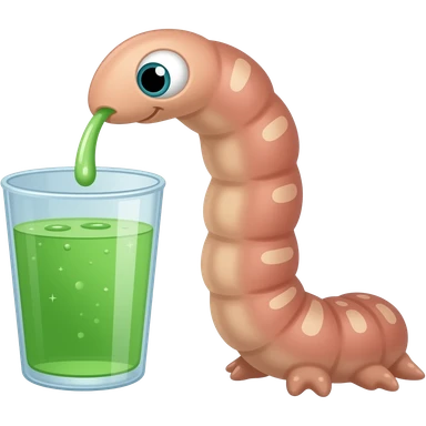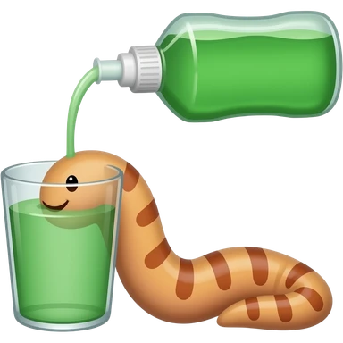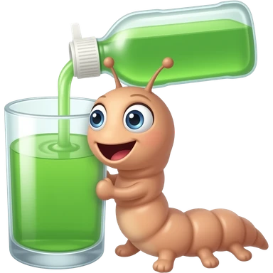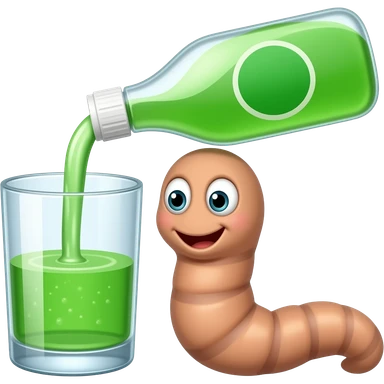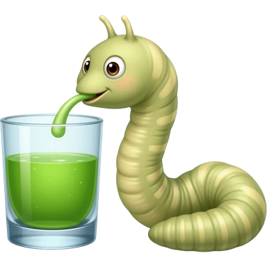 worm drinking and taking a sip of green dish soap out of a glass emoji