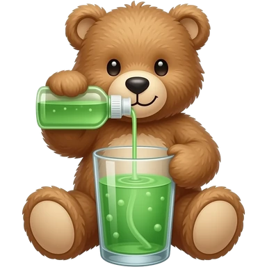 smooth haired teddy bear drinking green dishing soap out of a glass emoji