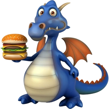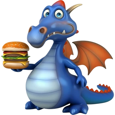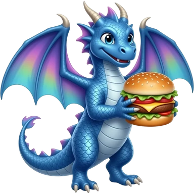 Blue dragon holding Burger emoji