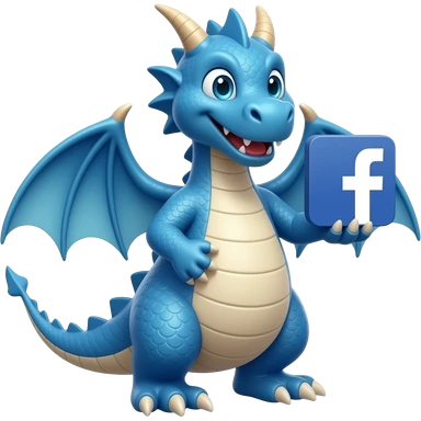 Blue dragon holding facebook logo emoji
