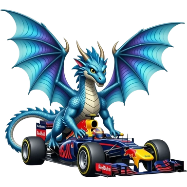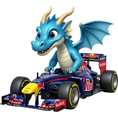 Blue dragon driving Red Bull formula 1 car emoji