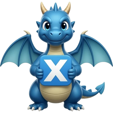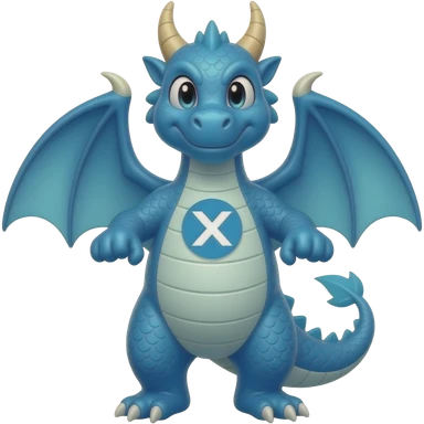 Blue dragon holding x logo emoji
