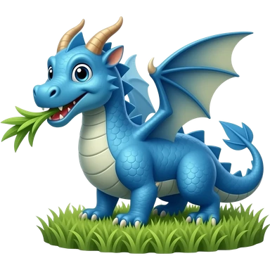 Blue dragon beathing grass emoji