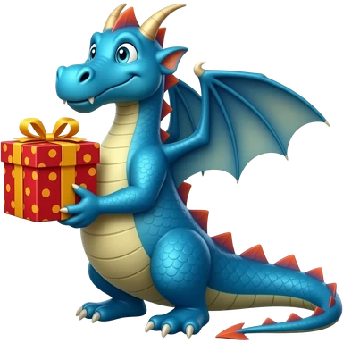 Blue dragon holding a gift emoji