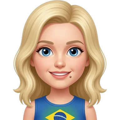 Blond withe girl with a little circle mole on her face up to her mout on the right in brazil emoji