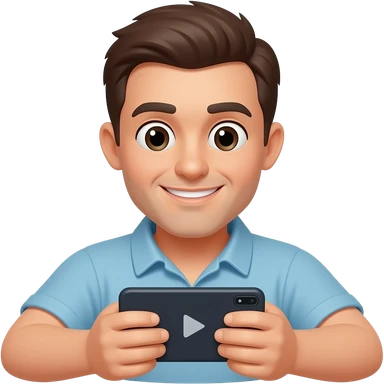 hombre sentado mientras mira videos en un telefono mienras lo ve emoji