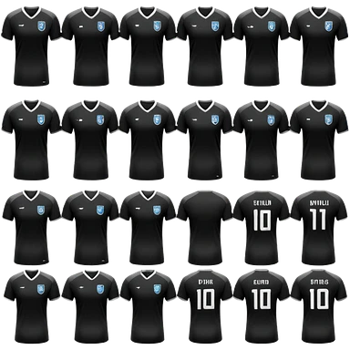 collection maillot de foot noir différents modèles (bande unique, uni, rayures) emoji
