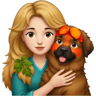 Ludo (ragazza mora capelli lisci lunghi) che abbraccia il suo cane leone (un barboncino biondo) emoji